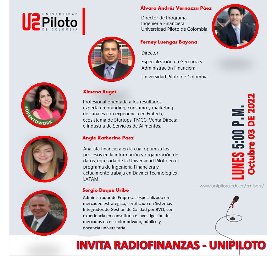 ¡Te esperamos! https://www.unipiloto.edu.co/emisora/ No se pierdan la programación de hoy, contaremos con especialistas en analista financiero, Fintech, marketing y administración.