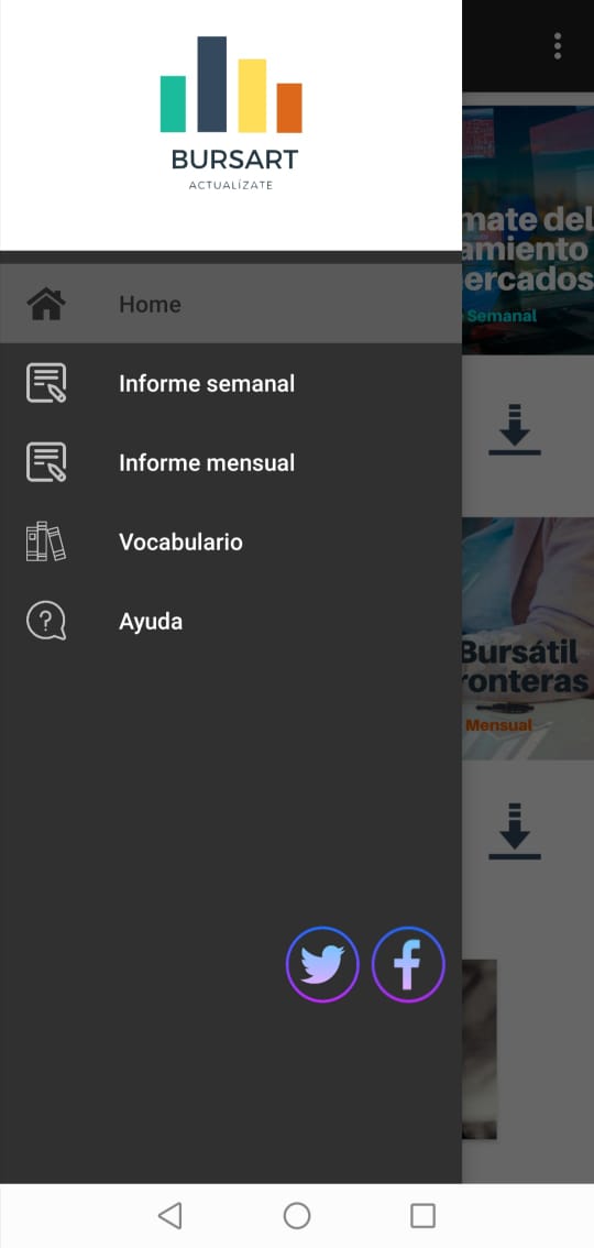 El aplicativo es denominado Bursart por la conformación de dos palabras: arte bursátil. Esta aplicación es creada en el desarrollador para aplicaciones nativas de Android, Android Studio. Bursart se desarrolla con el fin de obtener un medio de difusión para los informes Cápsula Bursátil Semanal y Actualidad Bursátil Sin Fronteras y de esta forma, se constituye una herramienta propia del Laboratorio Financiero de la Universidad Piloto de Colombia. Se enfoca en la comunidad académica y en las personas interesadas, conformando una herramienta de actualidad bursátil en un periodo de tiempo vigente para la toma de decisiones.