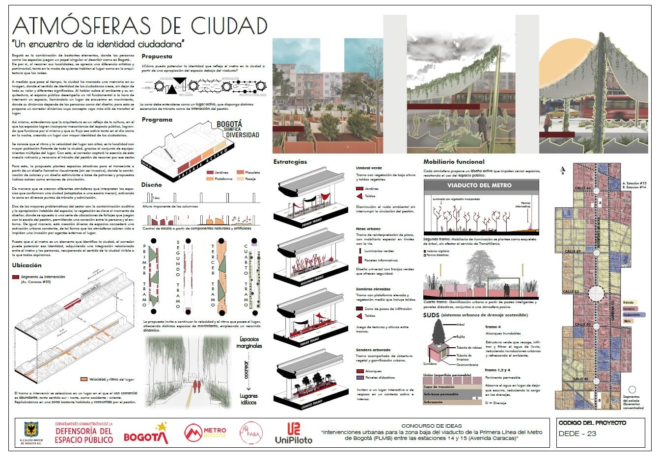 El concurso, organizado por la Facultad de Arquitectura y Artes con el apoyo del DADEP y la Empresa Metro de Bogotá, reunió 23 propuestas creadas por estudiantes de Arquitectura, Diseño Gráfico y Diseño de Espacios.