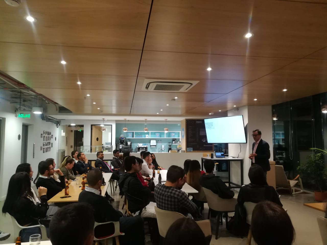 con expertos. El speaker fue John Montenegro, Dir. Mercadeo, Publicidad y Experiencia de la bolsa de valores de